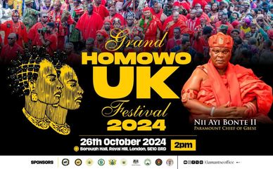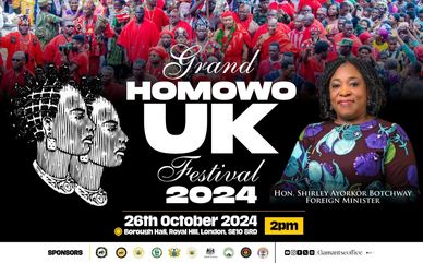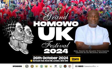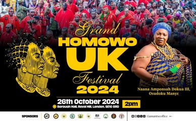 Authentically African and proudly GaDangme, the Grand Homowo UK Festival is celebrated in the UK - for those who cannot travel to Ghana for the main event for various reasons. It began in 2010, drawing inspiration from previous sporadic attempts to host the event.
